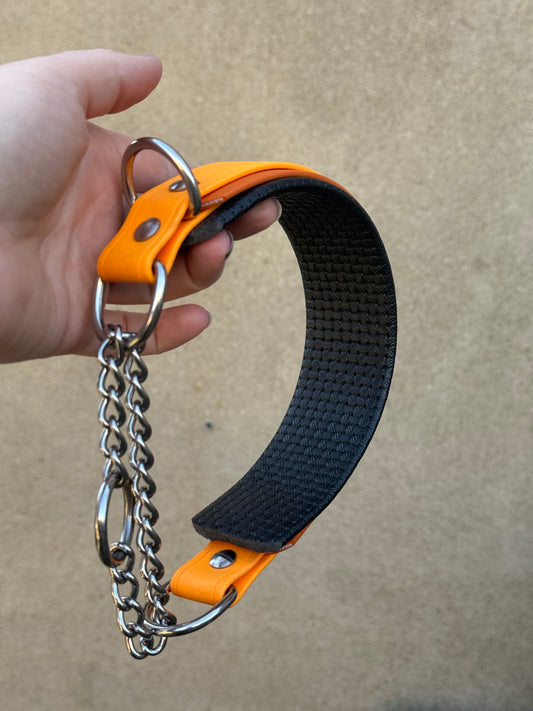 Hundhalsband aus Biothane mit Zugstoppkette und Polster