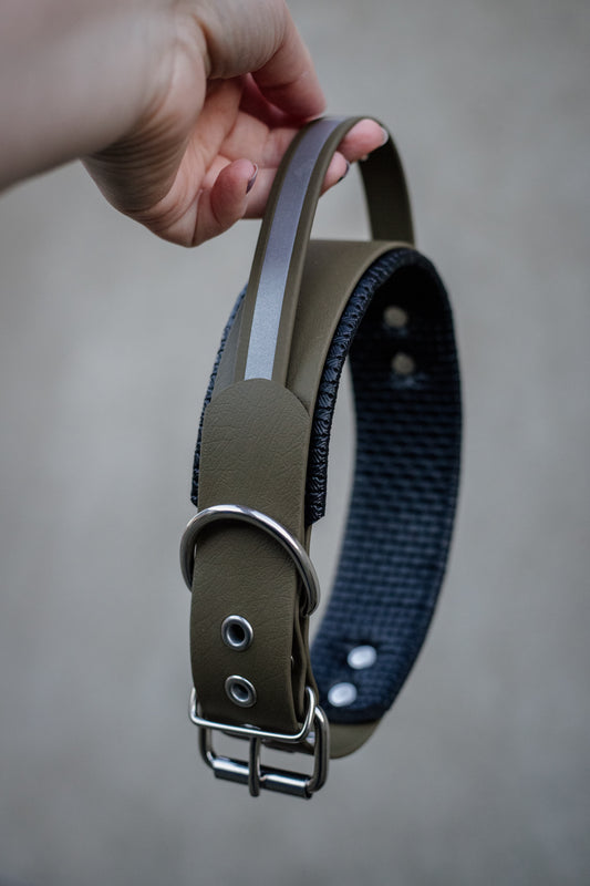 Breites gepolstertes Hundehalsband aus Biothane Griff reflektierend