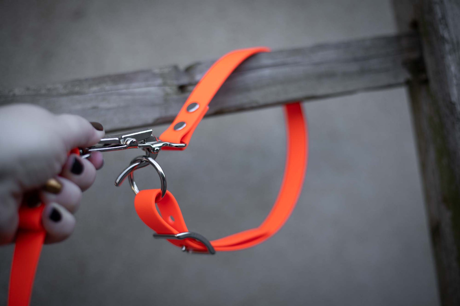 Bei Biothane handelt es sich um mit widerstandsfähigem PVC-ummanteltes Gurtband.